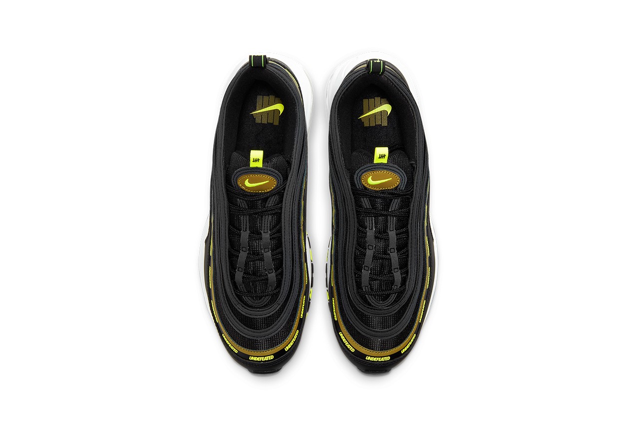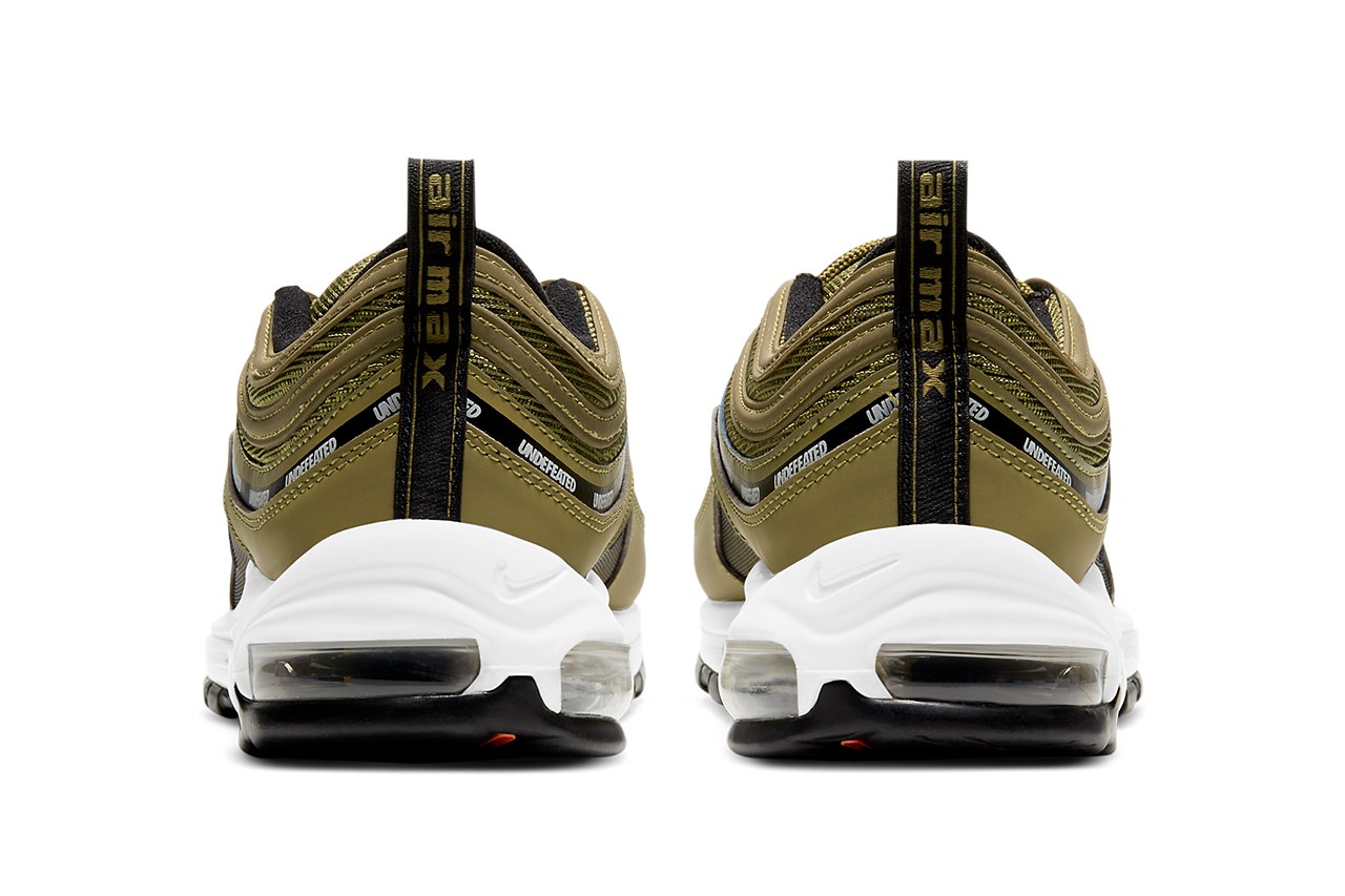 設計師表示,今次靈感是來自軍事裝中的OG飛行外套。鞋身用了牛皮和合成物料。設計重點先於流線設計位上著手,側邊的Air Max 97線位用上了UNDEFEATED印花,配以近鞋底處的低調Nike Swoosh。