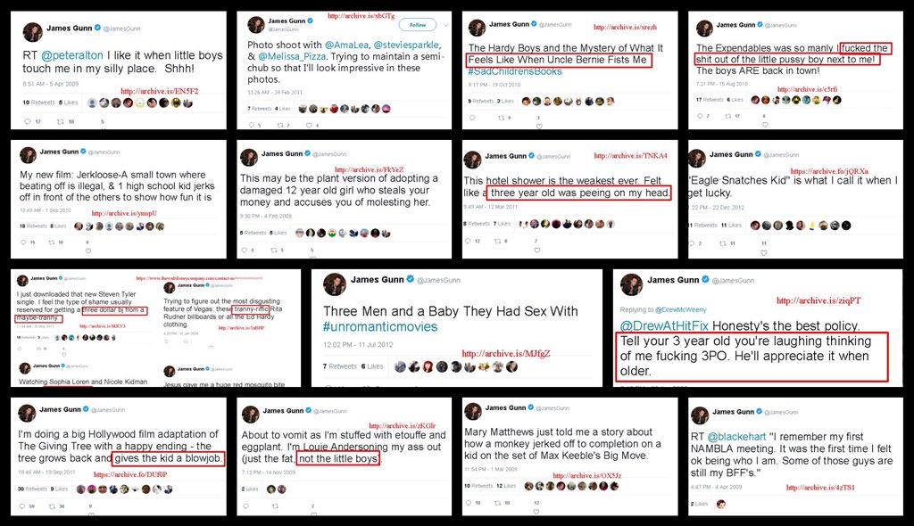 至於有關James Gunn曾經的言行,懂英文的你亦可以看看下圖,為何不翻譯?因為編輯沒有興趣因傳播孌童訊息而丟了工作。