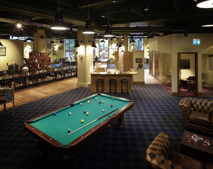 你在怎樣的辦公室工作自然會做出怎樣的作品,特別是從事創造,一式一樣沉悶的環境,就是輸在起路線!熱門遊戲minecraft的遊戲公司-Mojang位在斯德哥爾摩的辦公室,走入去唔知以為去了疑似「黑幫」派對,或是上流社會的「私竇」。最重要的是,不只門面,不只工作桌,這裡連廁格都「連戲」,將遊戲公司混合歐洲古典氣息的高級俱樂部只此一家。