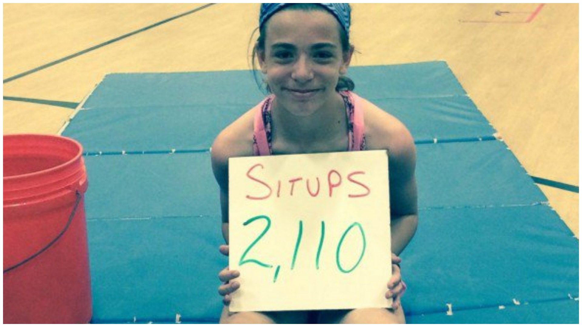 10歲小女孩Kyleigh Bass在90分鐘內就做了2110 下的仰臥起坐,打破了美國現有的紀錄。