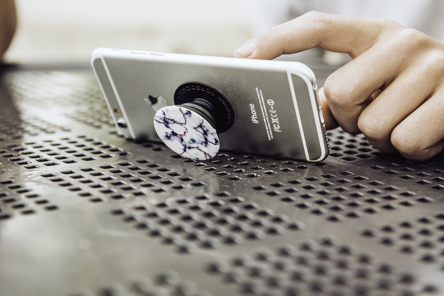 獨有摺疊氣囊設計,可以隨意拉出、拍扁,左扭右扭360度旋轉,按照不同場合及需要使用:作支架斜放手機,Selfie時將手指攝入POP SOCKETS影靚相避免跌手機。