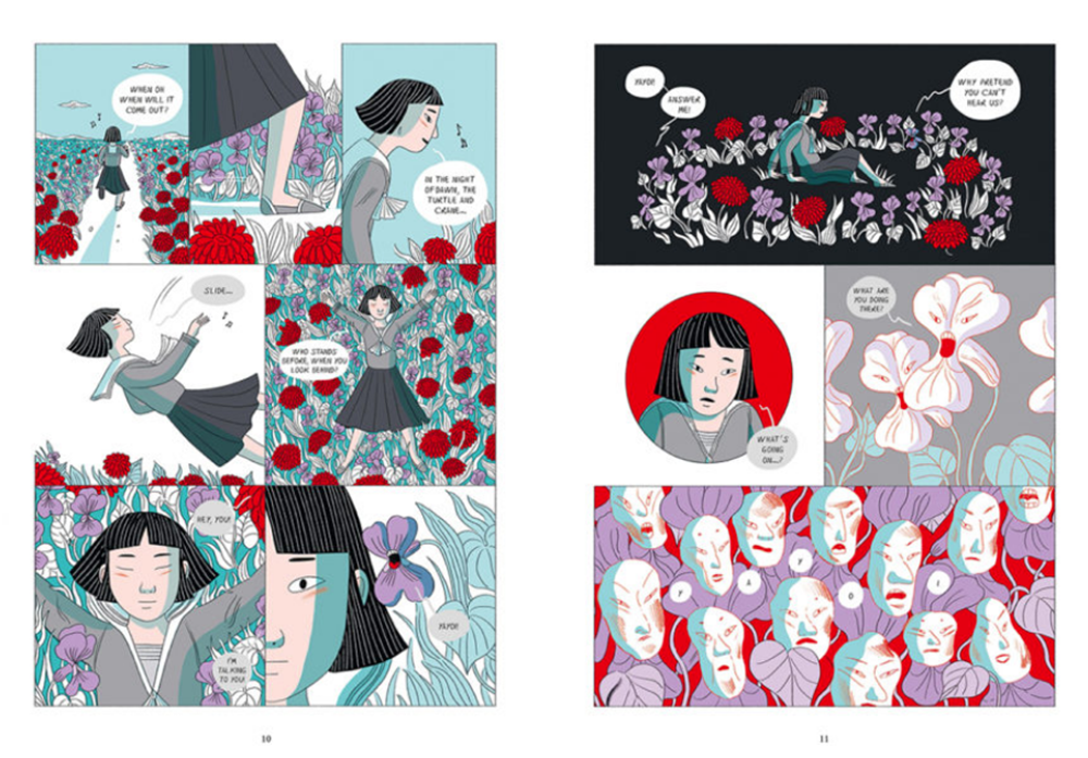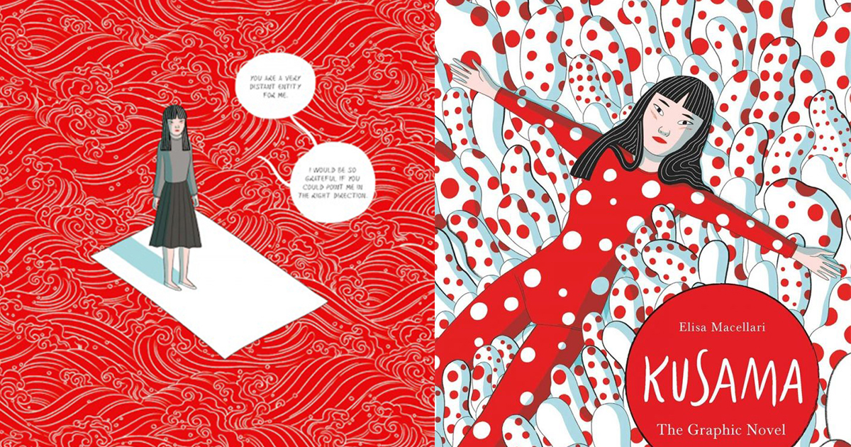 這本傳記漫畫《Kusama: The Graphic Novel》由意大利泰裔漫畫家Elisa Macellari執筆,她的作品之前亦在多間知名報社刊登過,包括《紐約時報》等,Elisa於漫畫中,運用簡單俐落的色彩來介入草間彌生的故事,也說明了她因精神病產生幻覺而看見的紅色圓點。