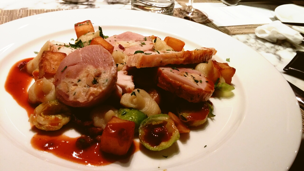 食火雞通常都係配紅莓醬,不過 AQUA 的意大利總廚 Paolo 就用黑松露汁嚟配烤火雞卷,真係隔住個 mon 都聞到陣香氣!