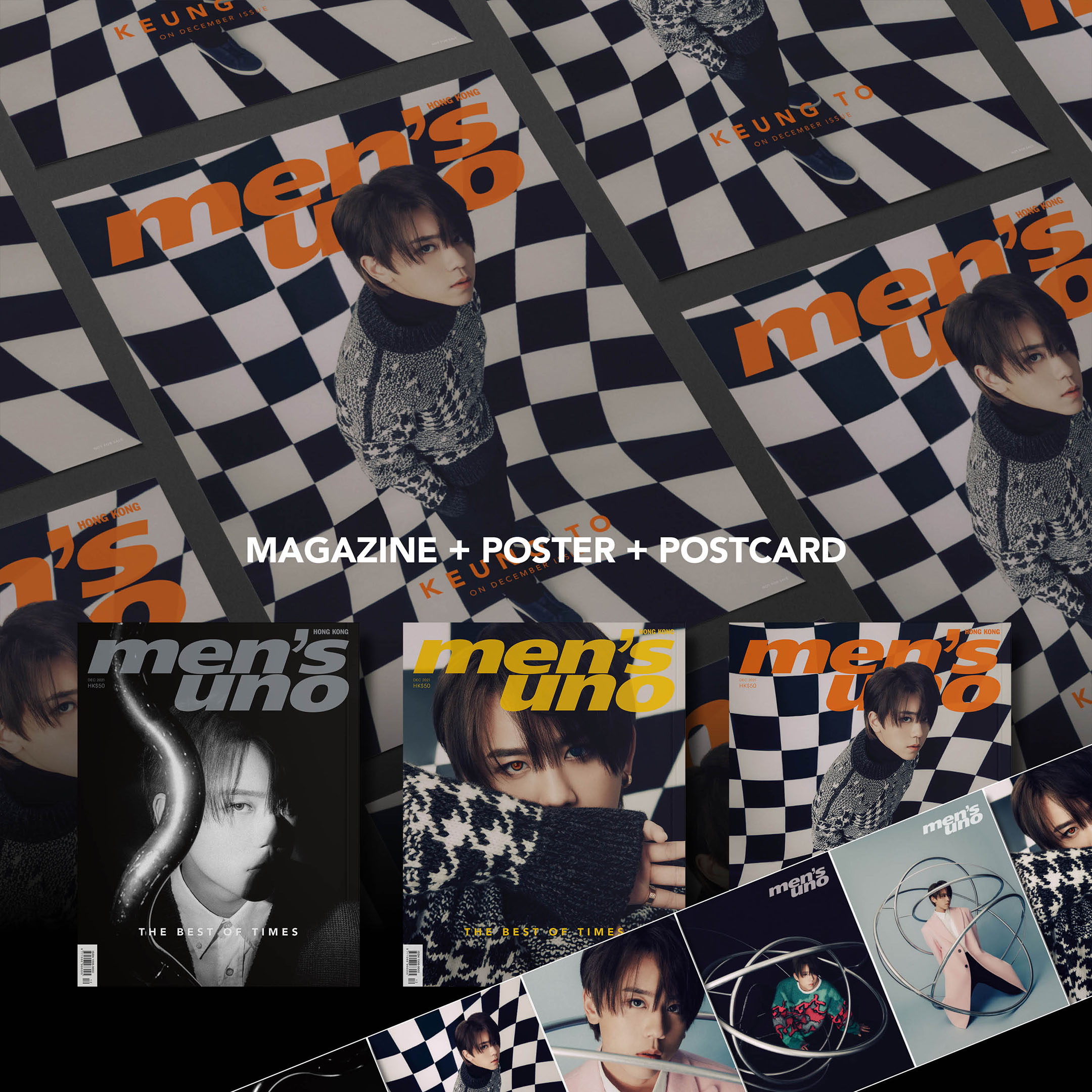 - men’s uno HK 2021年12月號(姜濤 Keung To 雜誌套裝款式一)每套售價為港幣$240,價格已包括香港本地運費,將以順豐速運寄付方式運送。