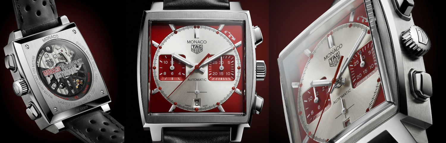 系列腕錶設奢華穿孔錶帶,選用幼紋黑色小牛皮製作。方形精鋼錶背設透明藍寶石水晶玻璃鏡面,向內印有摩納哥古董車格蘭披治大賽標誌,鏡面下可見TAG Heuer泰格豪雅錶廠自製的卓越Calibre Heuer 02自動機芯。機芯由總共168件組件構成,包括導柱輪和垂直離合機制,提供超卓的機械精準度與80小時非凡動力儲存。Grand Prix de Monaco Historique 腕錶以紅色錶盒包裝,盒上飾以賽車方格旗,此全新款式將為賽車愛好者於摩納哥汽車會展出,並於2020年7月27日發售,此前將於指定TAG Heuer泰格豪雅專賣店供顧客優先訂購。