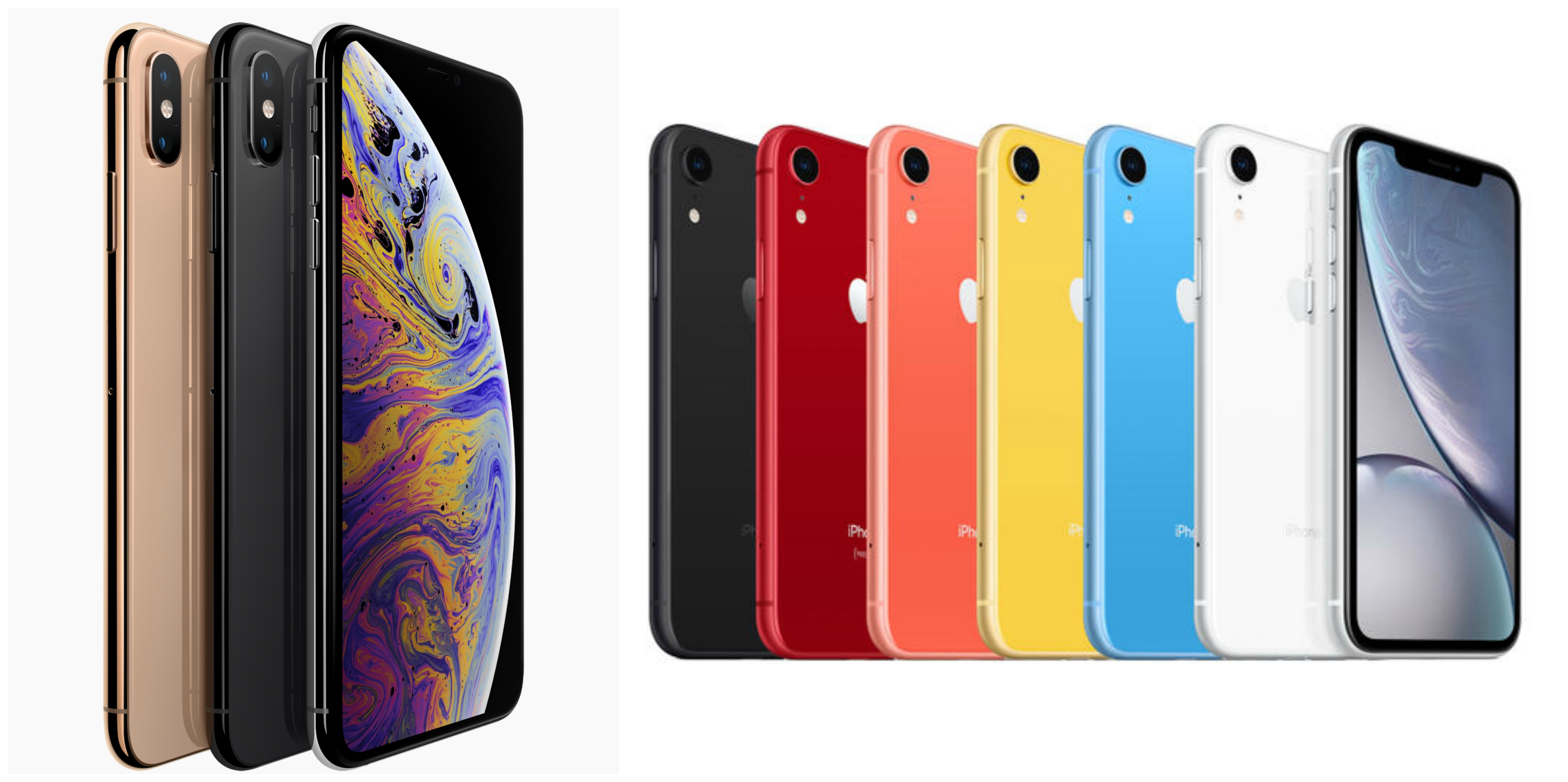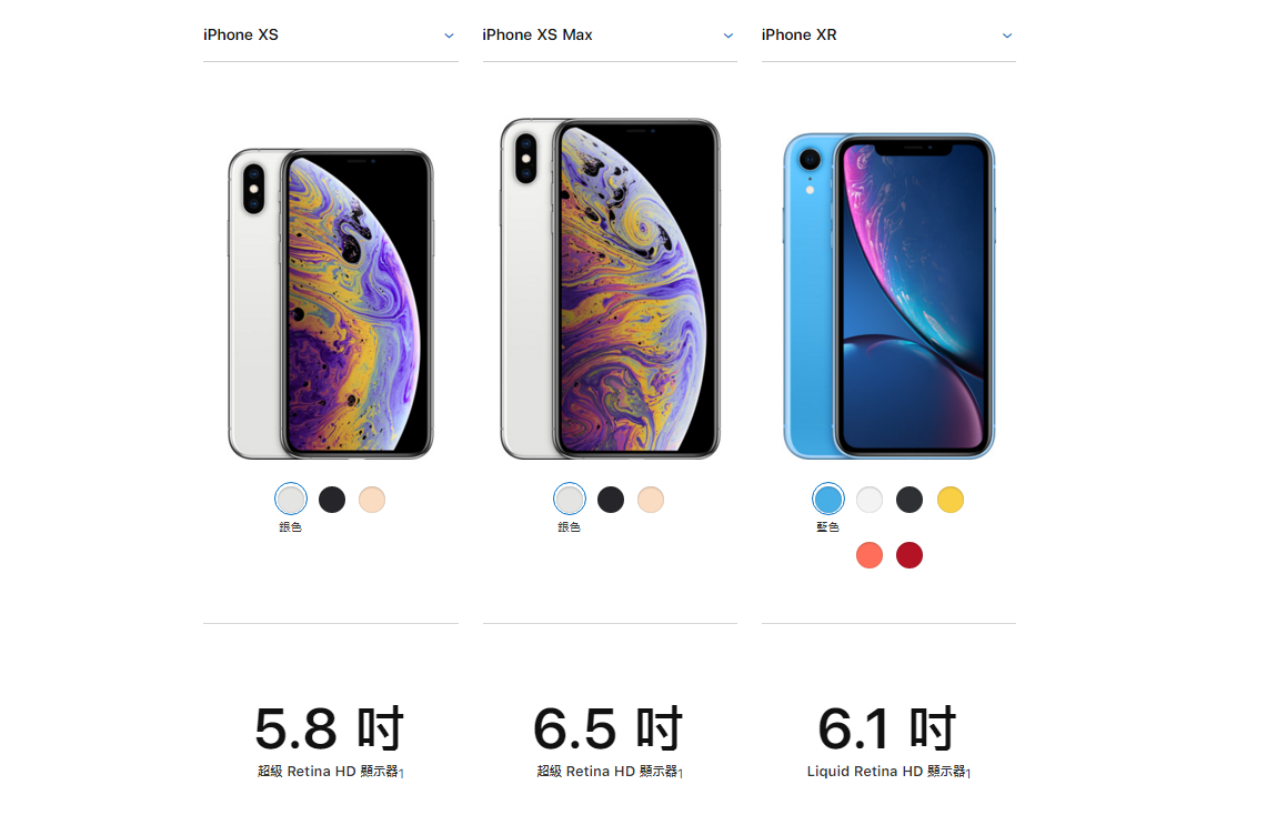 iPHone XR:藍色、白色、黑色、黃色、珊瑚色、Product Red
