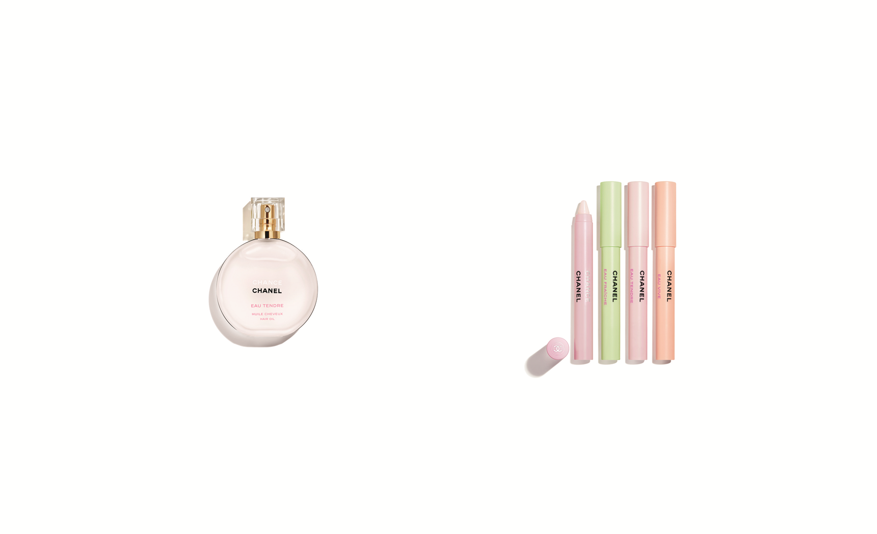 (Left- Chanel Beauty Chance Fragrance Pencils $835 , Right –Chanel Beauty Chance Eau Tendre Hair Oil $470 / 35ml )