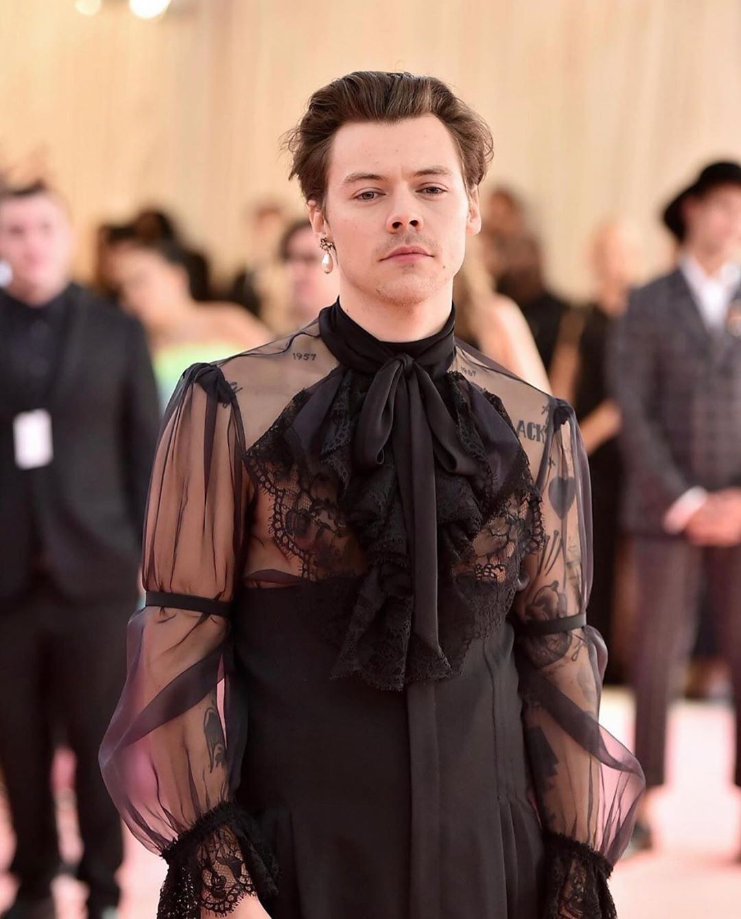 ▲Harry Styles在Met Gala的珍珠耳環造型,造就了時尚經典。(PHOTO/ Pinterest)