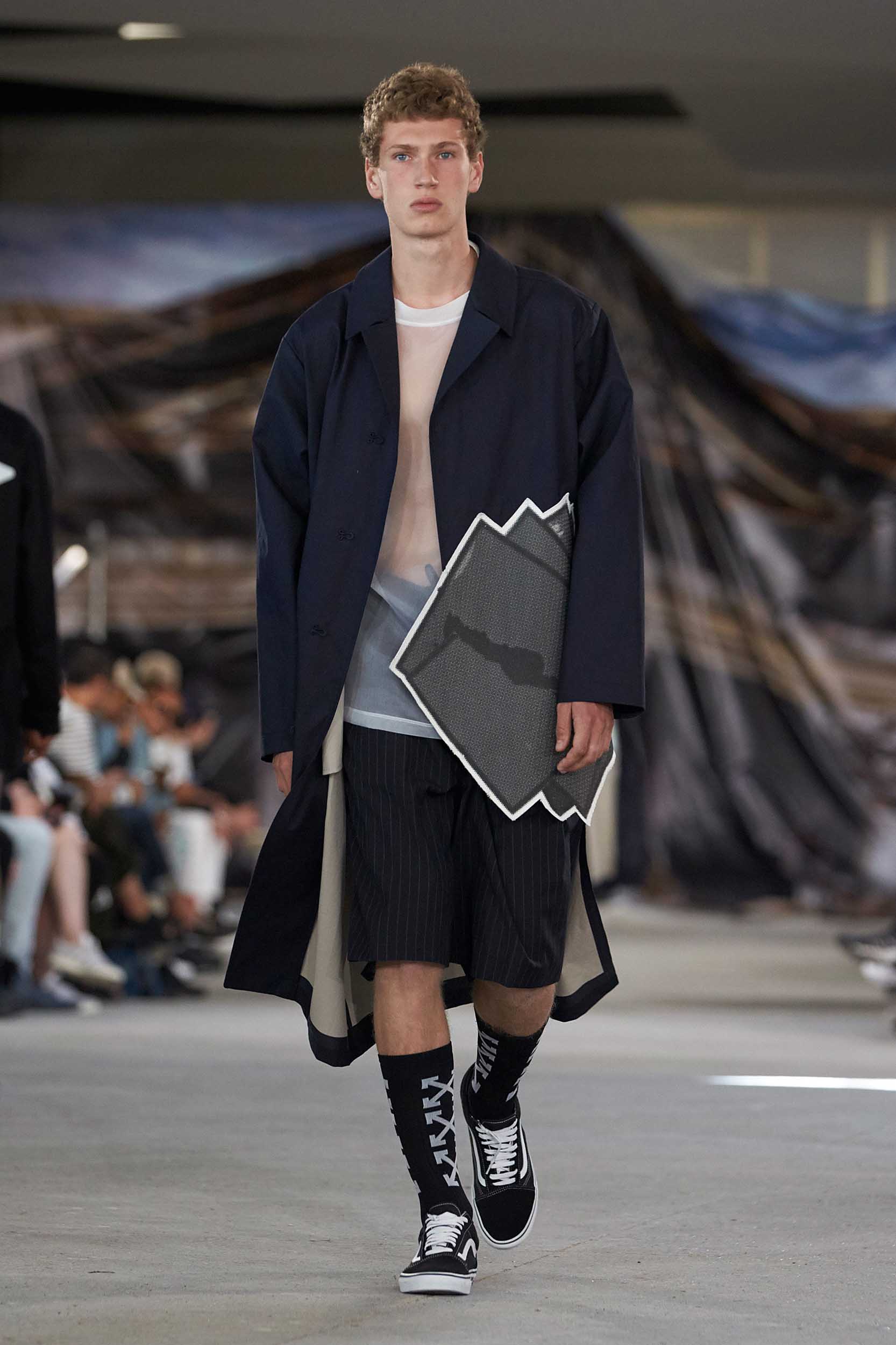 V:今季的2017春夏男裝系列命名為Mirror Mirror。我認為一個品牌之所以深入民心,是因為其廣為人知的品牌標誌性圖紋印花或logo,因此今季系列單品大幅度採用了品牌專屬的斜間條紋圖案及「OFF」字樣,除了以往在衛衣、波鞋及襪會加入這些元素外,更會將其運用到針織衣物及透明絲質T恤等重點款式中。另外,Oasis樂隊主唱Liam Gallagher也是今季系列的靈感來源之一,間接促成了我這次與復古運動品牌Umbro合作,推出拼布格紋恤衫、長袖翻領運動衣、鞋款等聯名產品。今季還邀請到藝術家Brendan Fowler為系列注入色彩,其經典影像作品如貼畫般分別運用在連帽衛衣、外套等時尚單品,為系列增添藝術氣息。