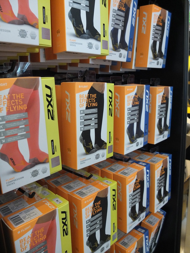 他們當然並非單單的在機場擺下擂台,而是要推介他們全新推出的飛行壓力襪,這款襪有助舒緩用家在飛行後雙腳的不適,當中更4小時作界線,分成長途機及短途機兩種,為不同機程的旅客提供最合適的裝備。而機場店現時更有優惠,只需港幣599元就能入手兩雙飛行壓力襪及另一雙24/7壓力襪,若同時用上平板支撐所得的120元現金卷的話,以479大元價錢入手2XU產品絕對是個好價格。